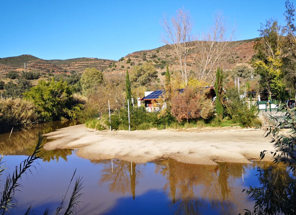 Casa Praia has one double bedroom, bathroom and spacious living kitchen. It has its own sunny roof terrace overlooking the Praia Fluvial, Alcoutim’s unique river beach.